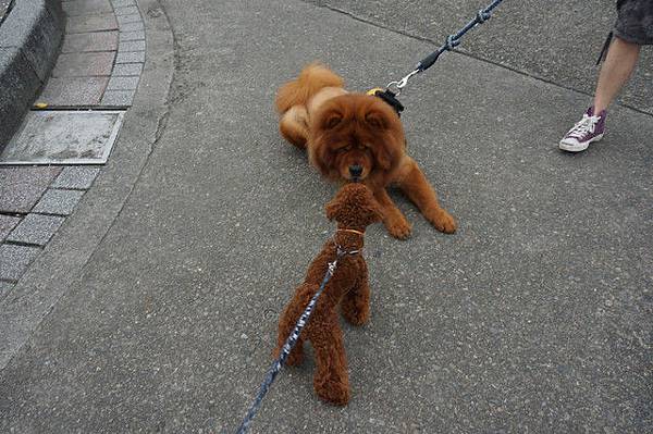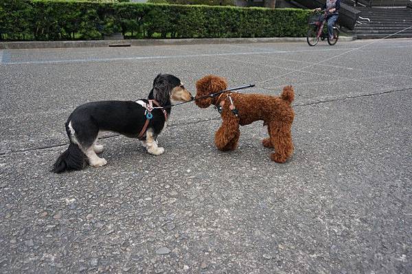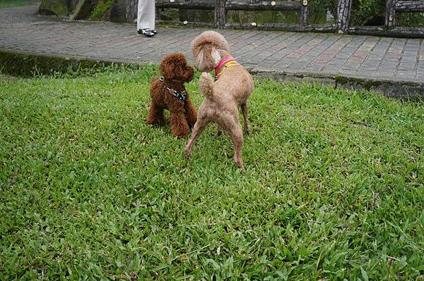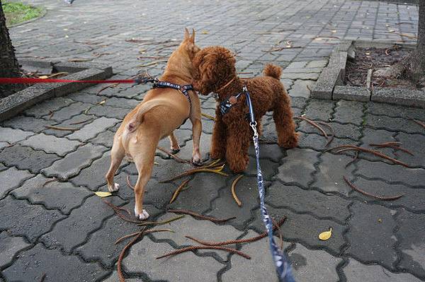 Q寶最近看到狗狗都直接衝過去,一點危機感都沒有,還好狗狗很乖